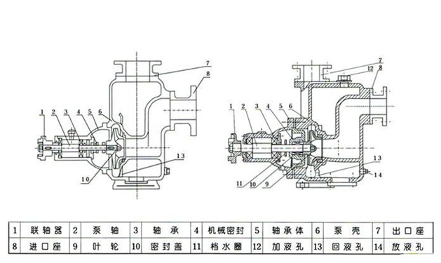2、检查泵壳内的储液是否高于叶轮的上边缘,如若不足,可以从泵壳上的加液口处直接向泵体内注入储液,不应在储液不足的情况下启动运转,否则泵不能正常工作,且易损坏机械密封。